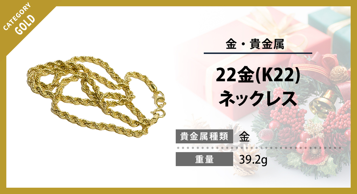 今回のお品物は、39.2g のしっかりとした重量を持つ22金ネックレス。