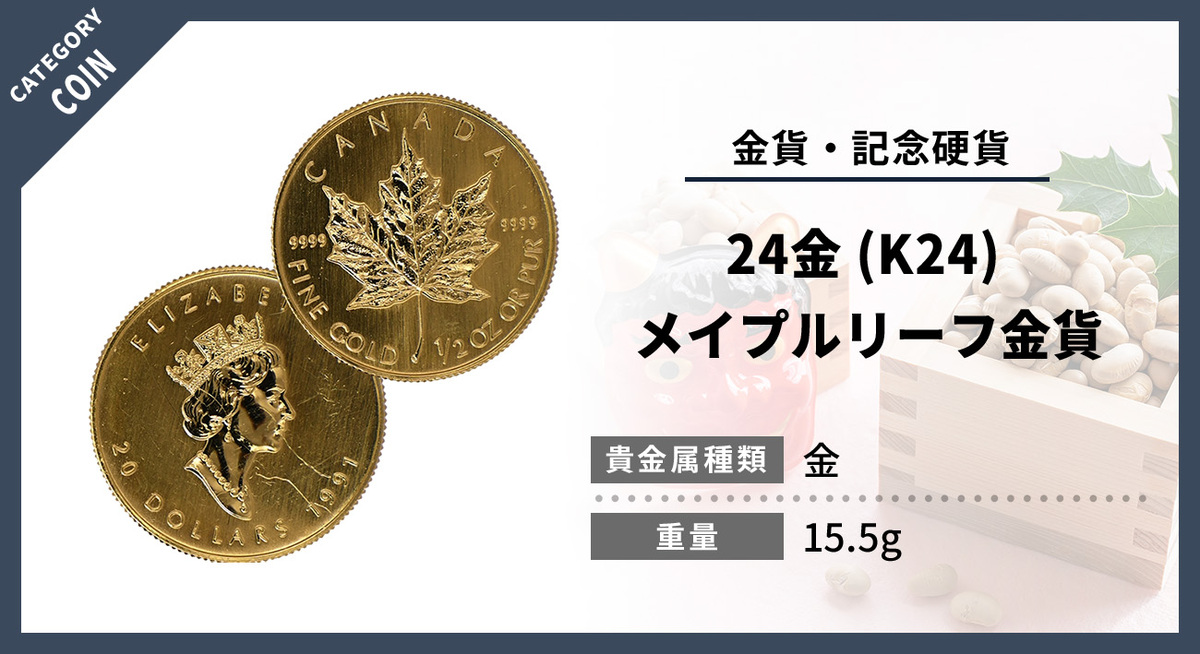 当店では24金(K24)メイプルリーフ金貨の価値を適正に評価し、最新相場を反映した査定を行っています。